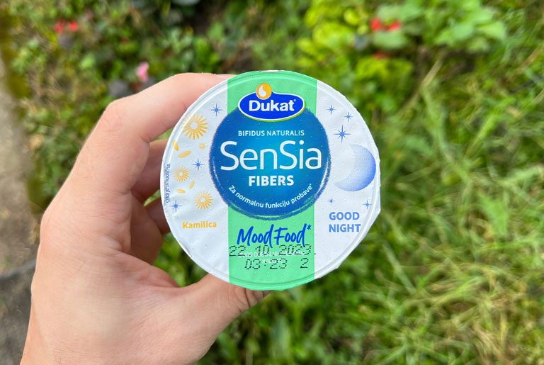 Dukat Sensia Fibers je mliječni proizvod koji oglašava sadržaj vlakana i navodno je za bolje spavanje. Tražili ste da ga recenziramo potaknuti ovim good night natpisom pa evo službene recenzije.