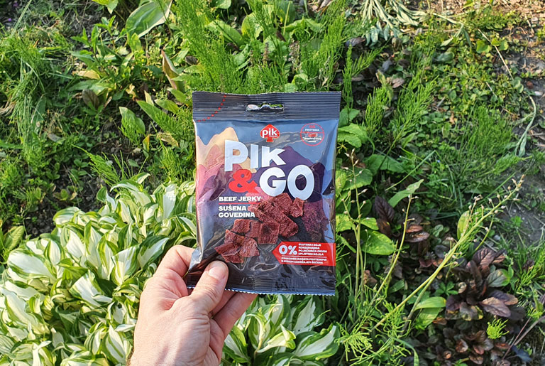PIK&GO beef jerky je ustvari sušena govedina, novi proizvod ovakvog tipa, a posebno ističe 0% glutena, soje, konzervansa, pojačivača okusa, umjetnih bojila, prirodno je bogata proteinima, ima nizak sadržaj šećera, a vjerojatno i liječi par bolesti. Isprobali smo ju i evo recenzije.