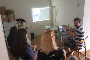 Zatim smo se vratili u prostor i učili osnove montaže na primjeru svojih videa. Voditelj radionice demonstrirao je montažu na svojem laptopu, a projektor je osigurao svim sudionicima jednostavno praćenje montaže. Voditelj je objašnjavao svaki korak kao i osnove korištenja Adobe Premiere programa, posebice prečace na tipkovnici za što brži rad.