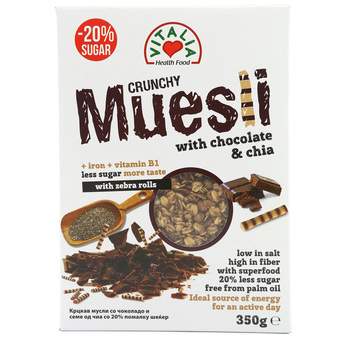 Vitalia muesli crunchy čokolada, chia sjemenke (3%)
